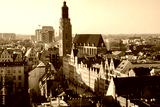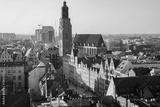 Panoramic view of Wroclaw, Poland, featuring St. Elizabeth's Church, colorful historic facades, and modern structures under a clear sky.