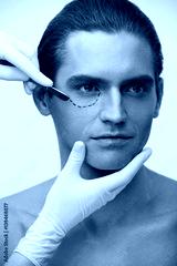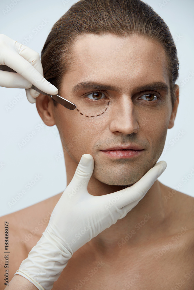 Plastic Surgery. Portrait Of Handsome Man With Lines On Face