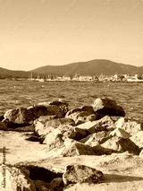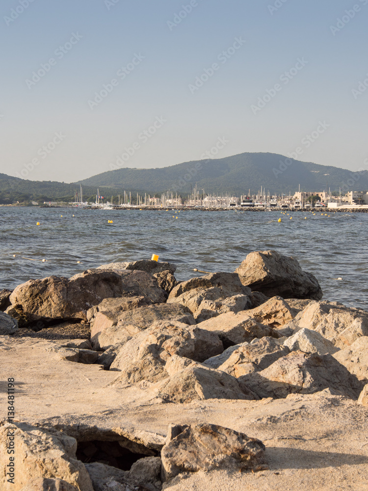 Beautiful early morning sunshine and quiet beach at Port-grimaud, France