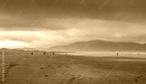 Visitors taking a walk on the beautiful Inch beach, Dingle bay, Republic of Ireland.