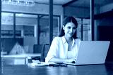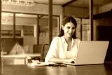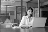 Smiling latin hispanic female marketing manager, professional it specialist working, browsing at laptop computer sitting at desk in modern office. Cheerful young woman employee using pc for business