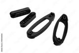 Black plastic spacers designed for extending the stock of rifles or shotguns, isolated on a white background.