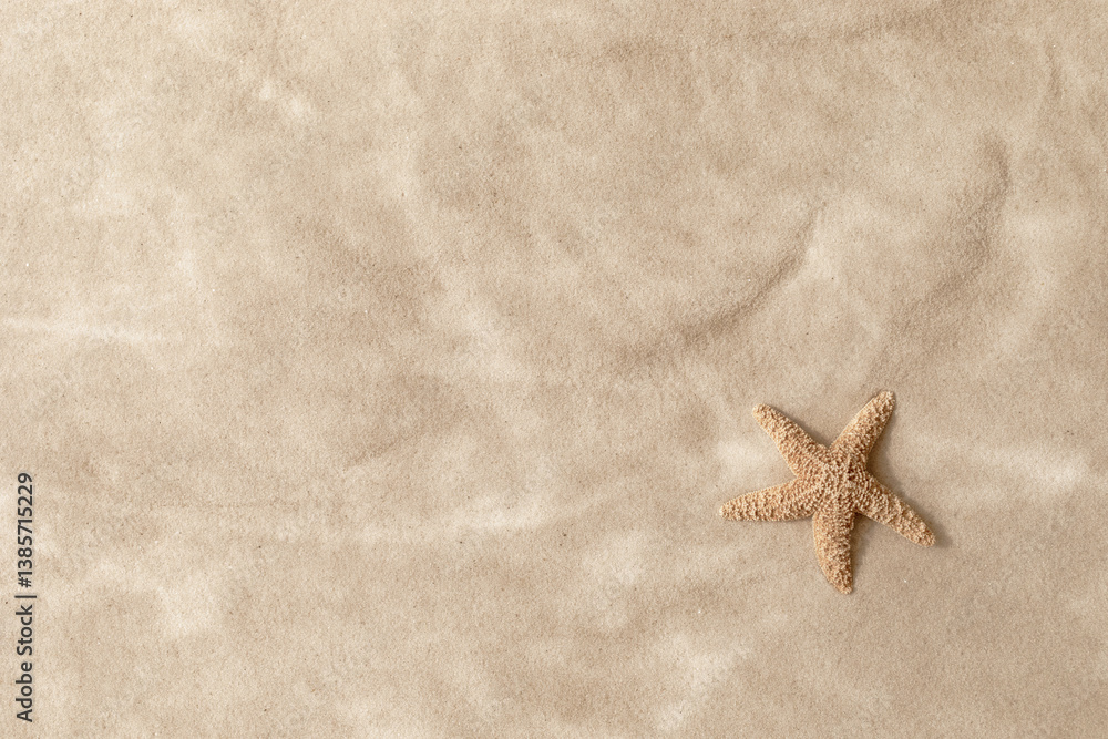Sandy beach with beige starfish as natural textured background for summer travel and vacation design