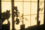 Abstract background with window shadow and sunlight on a biege concrete wall. Mockup for presentation, screensaver with plant reflection and window frame.