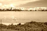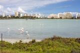 Calpe. Spain's Costa Blanca coast. Lake Les Salines In the very centre of Calpe, famous for its fleming. Urban development in the background.