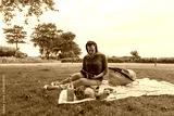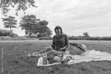 Attractive woman with tablet pc at picnic on the nature