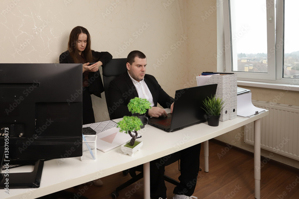 Colleagues Working Together Reviewing Financial Graphs and Charts at Office Desk