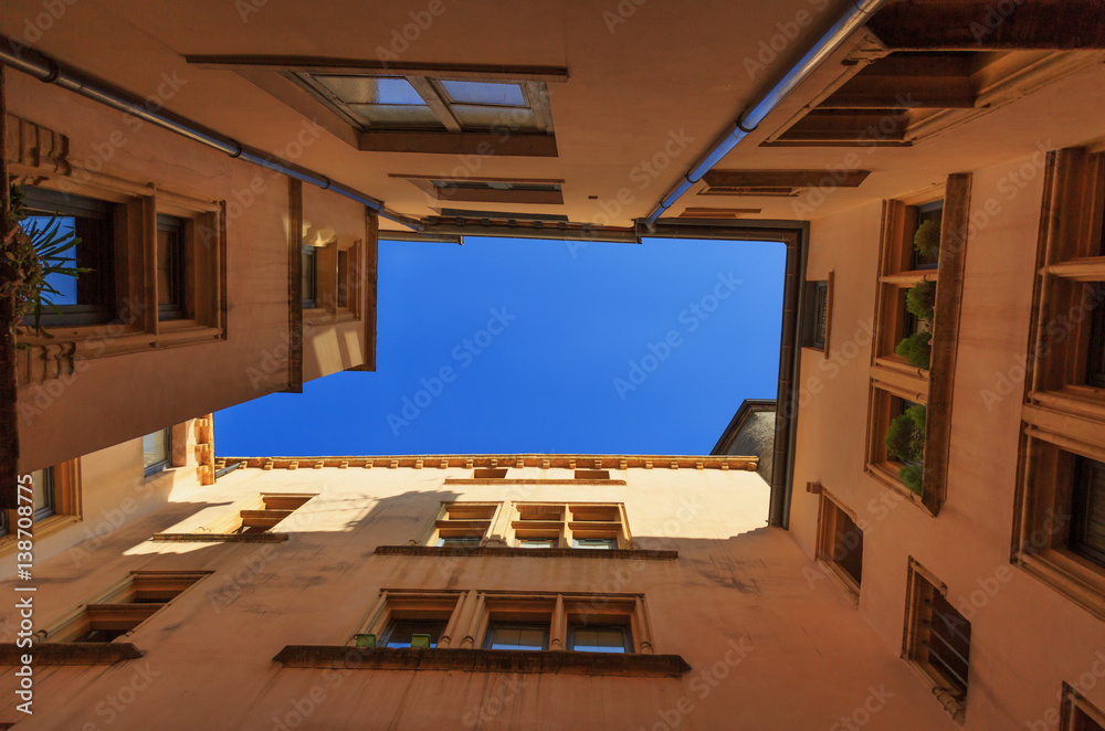 A historic and colorful traboule in Vieux Lyon, Lyon, France.