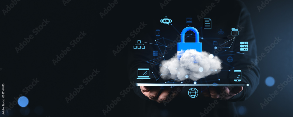 Cloud padlock symbolizing digital data security and cloud protection concept.