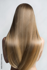 Portrait Of A Beautiful Young Blond Woman With Long Straight Hair. Back View