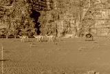 Camels passing a tourist camp in Wadi Rum desert, Jordan