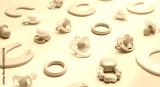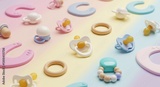 Pastel Baby Pacifiers Teethers Toys on Rainbow Background