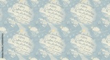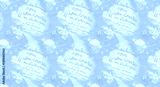 Seamless Pastel Blue Watercolor Pattern with Handwritten Text Clouds and Stars Whimsical Design