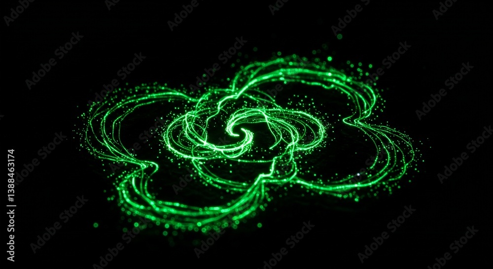 Abstract Green Light Trails Swirling Energy Glowing Particles Dynamic Motion Dark Background Neon