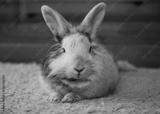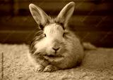 Nie przejmuj się niczym, jeśli masz spokój w sobie. Królik leży z przymrużonymi oczami.