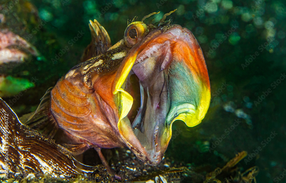 Fish open mouth underwater. Underwater coral fish open mouth. Coral fish opens its mouth wide underwater