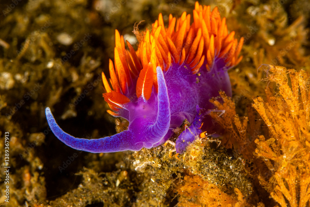Nudibranch mollusk underwater. Underwater nudibranch. Sea slug in underwater macro world