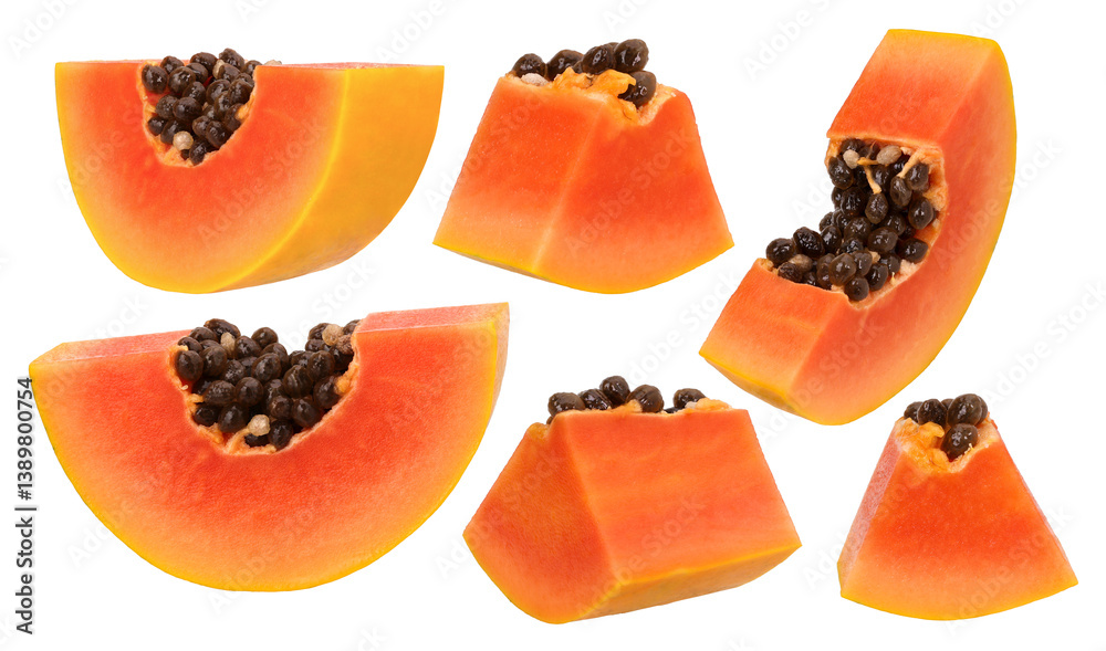 Ripe papaya slices isolated, transparent PNG, PNG format, collection