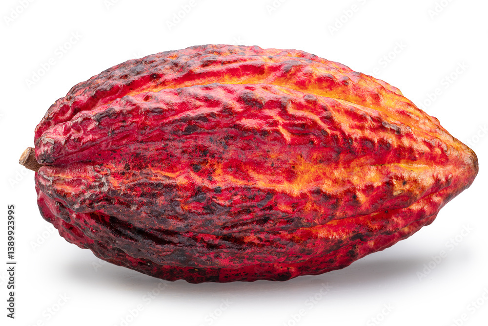 Fresh cocoa fruit or cocoa pod isolated on white background. Clipping path.