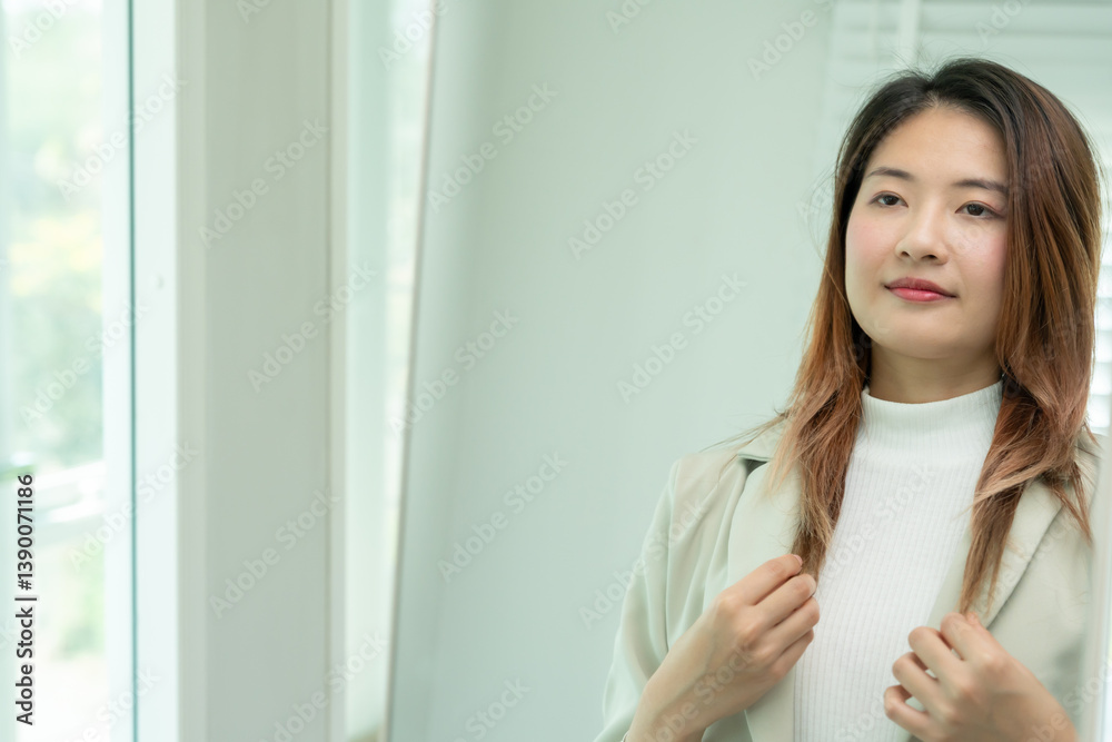 Beautiful woman preparing before job interview, building confidence, job applicants resume to position vacancies, find human. Human resource, letters, competence, new graduate, looking for work