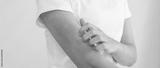 skin problem and beauty. Young woman scratch body has itchy skin from skin allergic, steroid allergy, sensitive skin, red from sunburn, chemical allergy, rash, insect bites, Seborrheic Dermatitis.