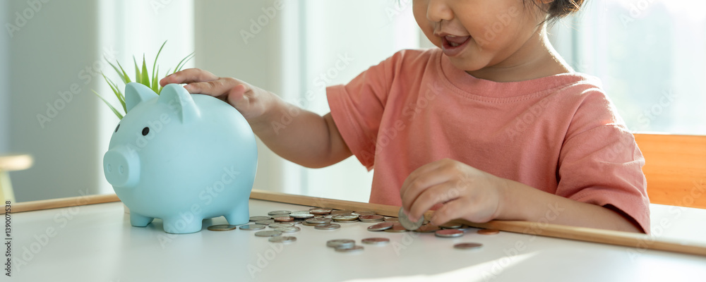 Save money. Smart modern woman putting coin into piggy bank for saving. wealth, Finance, business, investment, retirement, future, accounting, plan life, economize, banking, family, health..