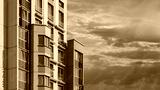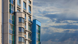 City view on a sunny day. Modern houses against the blue sky.