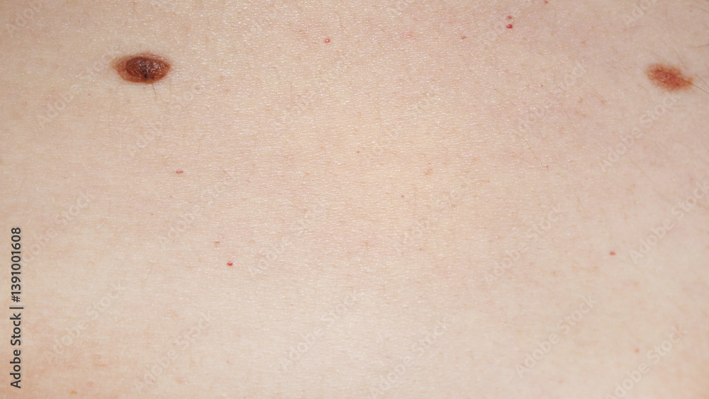 A patch of light skin with two visible moles, useful for skin health examination.