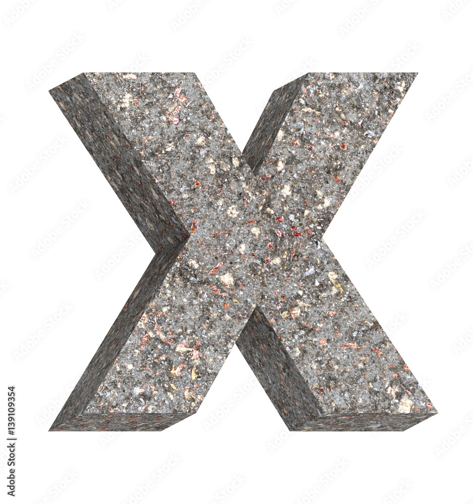 One letter from granite alphabet set isolated over white. 3D illustration.