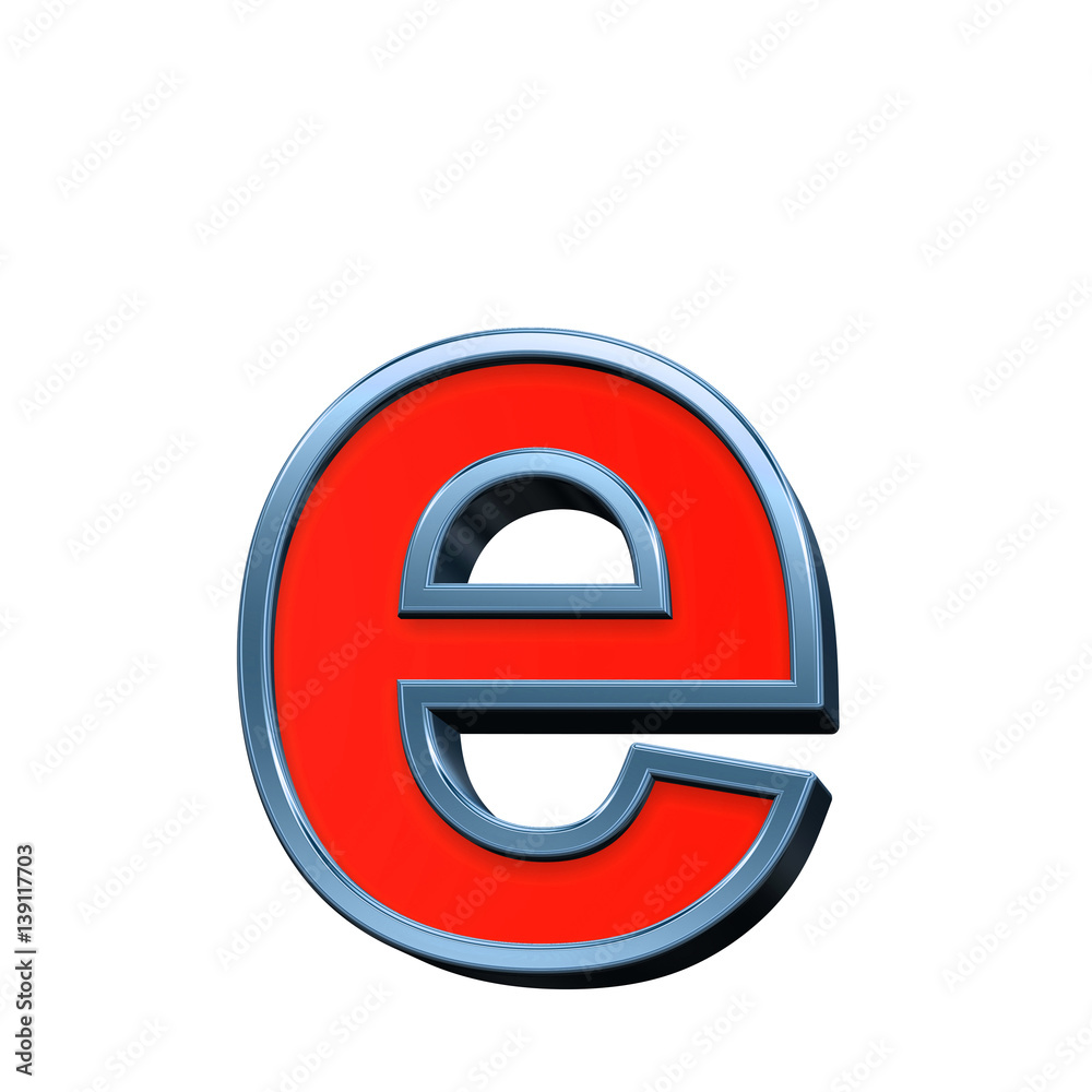 One lower case letter from red with blue frame alphabet set, isolated on white. 3D illustration.