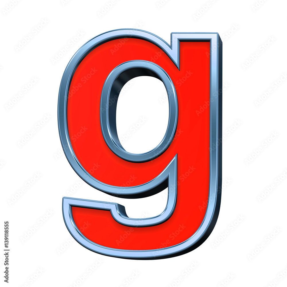One lower case letter from red with blue frame alphabet set, isolated on white. 3D illustration.