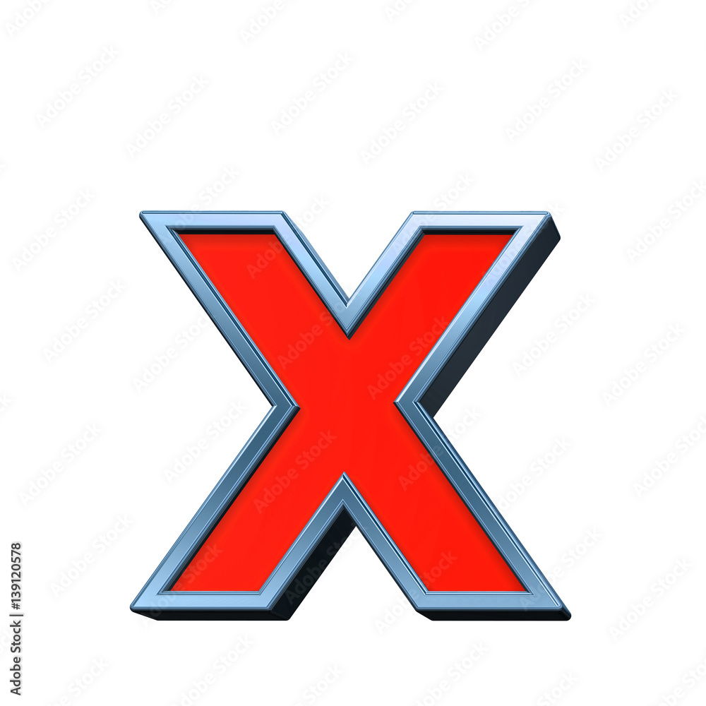 One lower case letter from red with blue frame alphabet set, isolated on white. 3D illustration.
