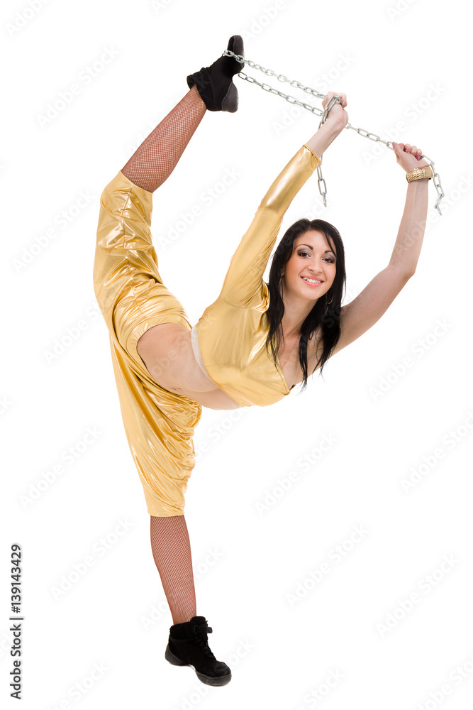 Disco dancer showing some movements against isolated white