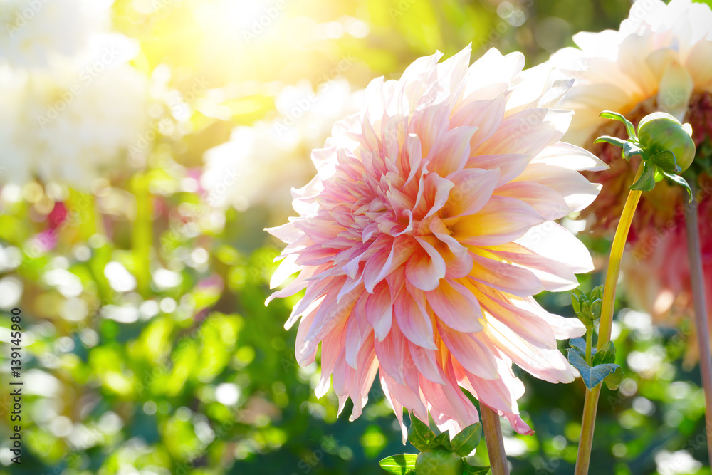White chrysanthemum in sun backlit.