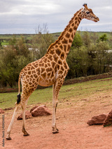Dalton-in Furness, Cumbria, UK. 19th April 2015. Giraffe enjoying a walk around the South lakes safari park, Dalton-in-furness, Cumbria, UK