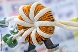 Electric transformer. Power equipment made of copper wire. Round electrical transformer close-up. Equipment for providing energy supply. Electrical transformer for industrial equipment