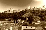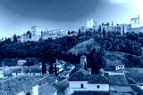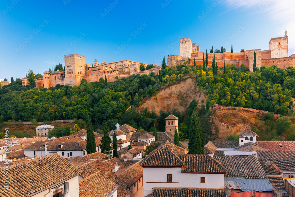 Palace and fortress complex Alhambra and old town area of Albaicin during sunset in Granada, Andalusia, Spain