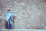 Woman Traveler with Backpack hiking in Mountains with beautiful summer landscape on background mountaineering sport lifestyle concept