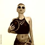 Stylish hipster Model. Boho Beach Summer outfit. Knitted top and straw hat. Relax Accessories