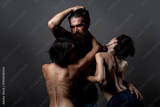 Threesome concept. Three sexy models together. One man and two sexy women. Polygamy or bigamy. Swinger or trio. Bisexual lady. Prostitution or fantasy. Polyamory and polygamy. Romantic of Threesome.
