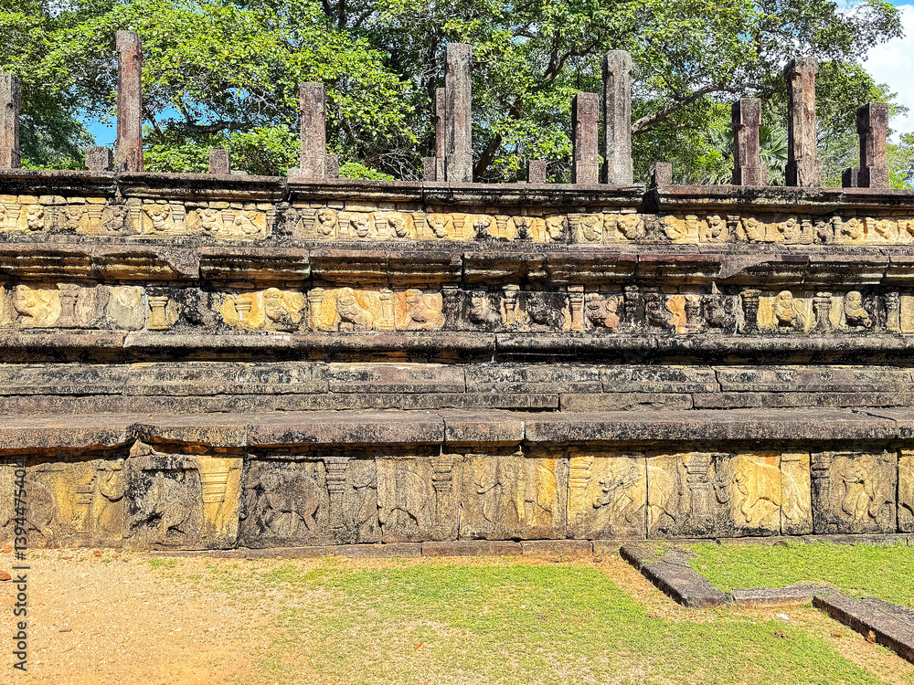 ポロンナルワ遺跡の閣議場、側面に彫られたレリーフ、世界遺産