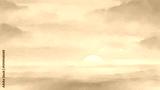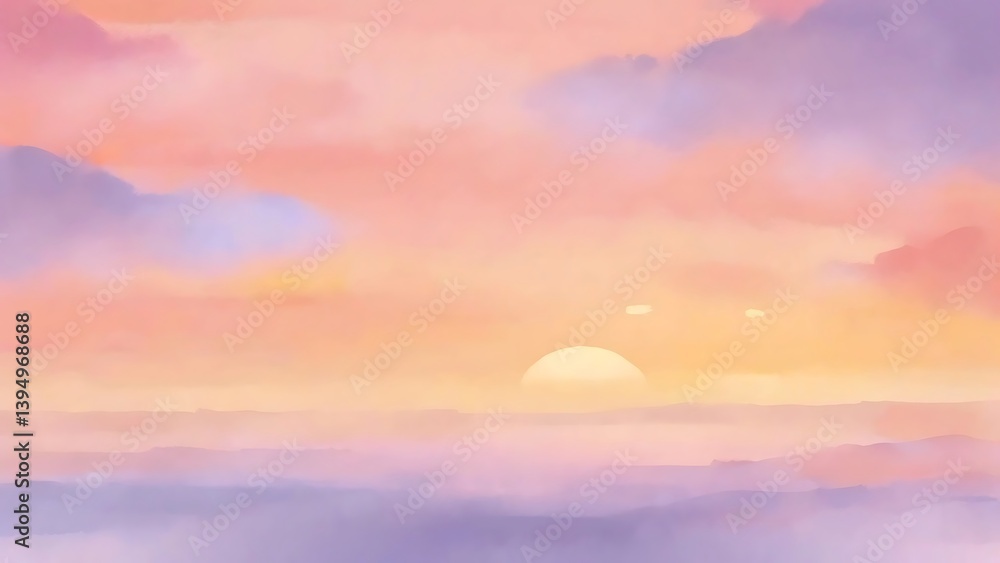 Pastel Sunset Illustration With Soft Clouds And Mountains Landscape Background