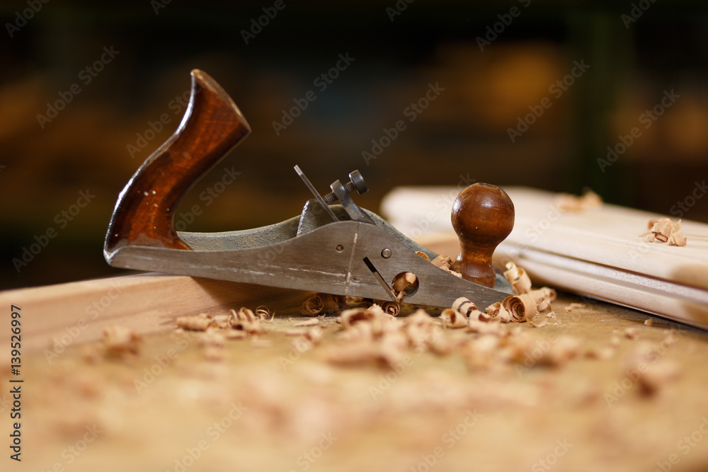 Carpenter`s planer in a carpentry workshop