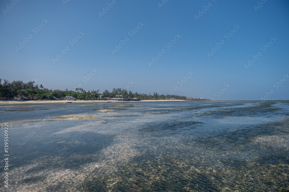 laguna u wybrzeży Mombasy w Kenii podczas odpływu