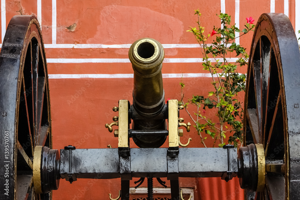 Ancient cannon guarding an palace entrance, Jaipur, Rajasthan, India