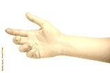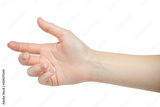 Beautiful woman hand holding or given isolated on white background. manicured nails