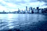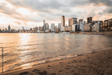 Benidorm, Spain. The setting sun illuminating the promenade and skyscrapers. Cityscape