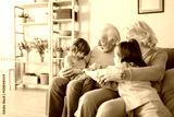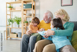 Caucasian Grandparents Enjoying Quality Time with Cheerful Grandchildren in Bright and Cozy Living Room