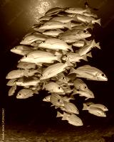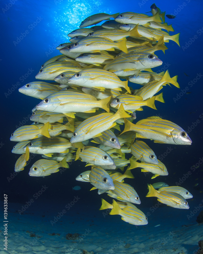 Fish in sea. Snapper fish school in ocean