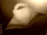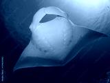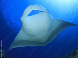 Manta Ray comes to cleaning station. Manta ray swims over coral reef with fish